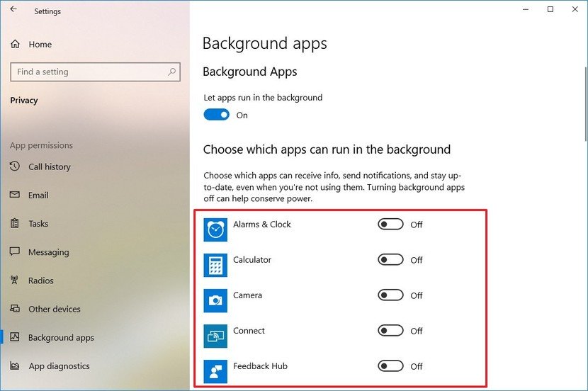 If you want to increase the performance of Windows 10 as much as possible, you can disable the apps that you don’t want to work in the background, or you can disable the feature entirely.