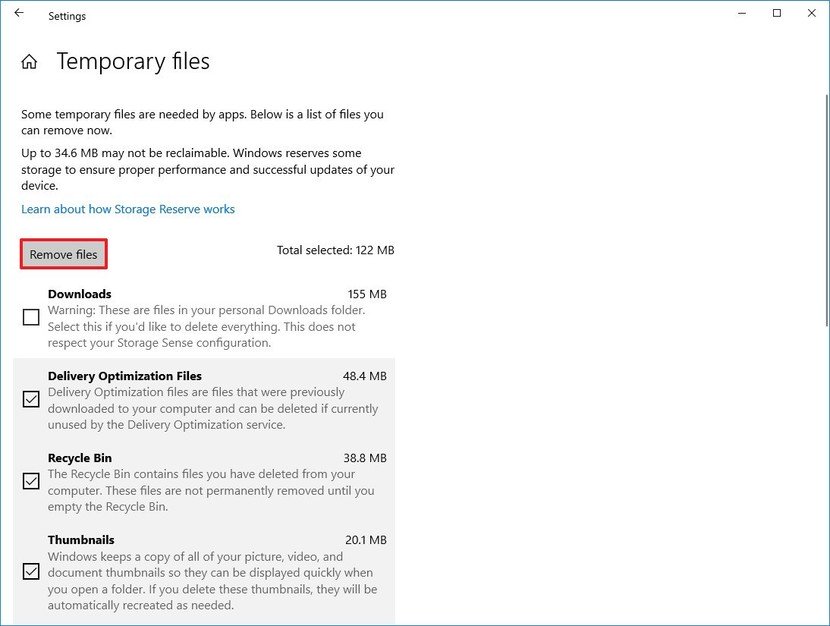 Quick tip: When selecting the temporary files that you want to delete, consider that selecting the Downloads option will delete everything inside the „Downloads“ folder. If you’re going to keep these files, don’t check this option. Also, if available, you can select to delete the „Previous Windows Installation(s)“ item, but once you delete these files, you won’t be able to roll back to a previous version of the OS.