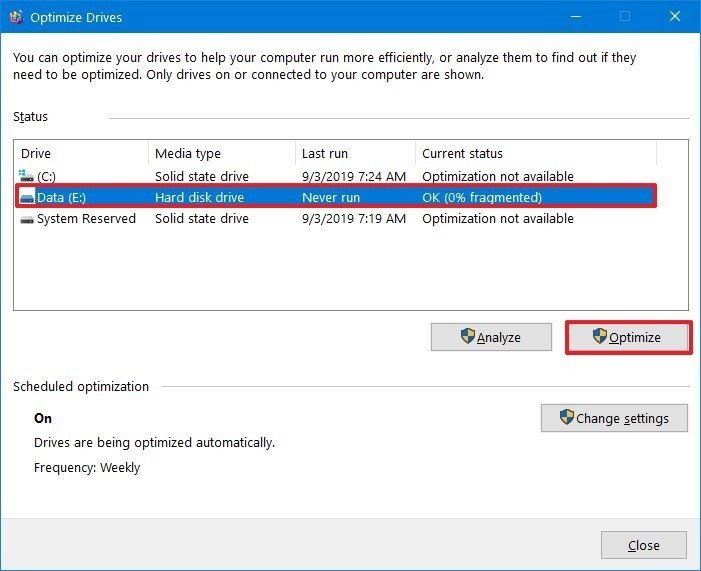 After you complete the steps, the tool will organize the files to spend less time seeking for them the next time they’re needed, which will result in a noticeable improvement in performance. The time to complete the process will depend on the drive size, data on the drive, and system configuration.