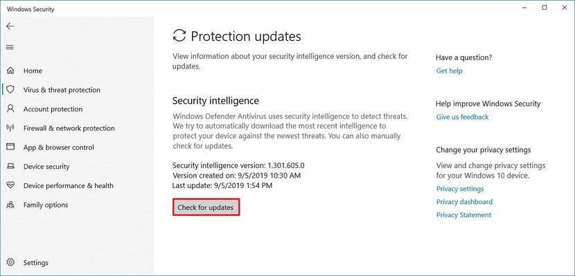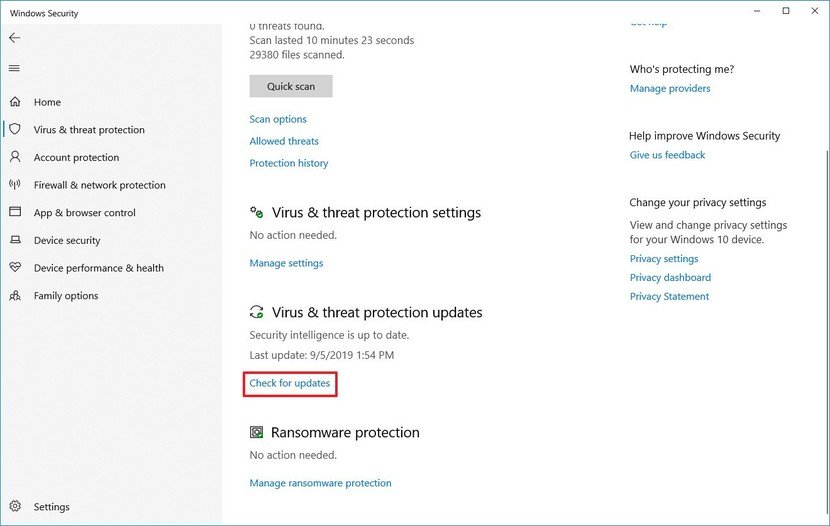 Under the „Virus & threat protection updates“ section, click the Check for updates option.