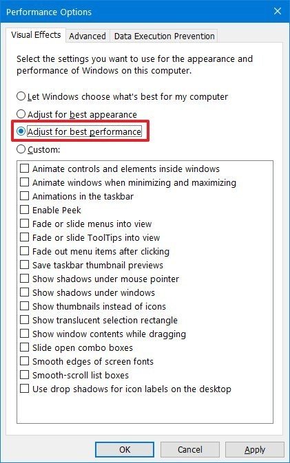 Once you complete the steps, the standard visual effects will disable, and interacting with elements, such as windows and menus, will feel more responsive.