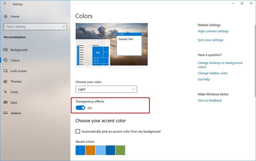 To disable Fluent Design visual effects on Windows 10, use these steps: