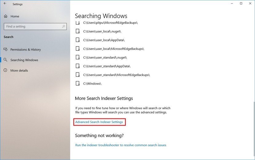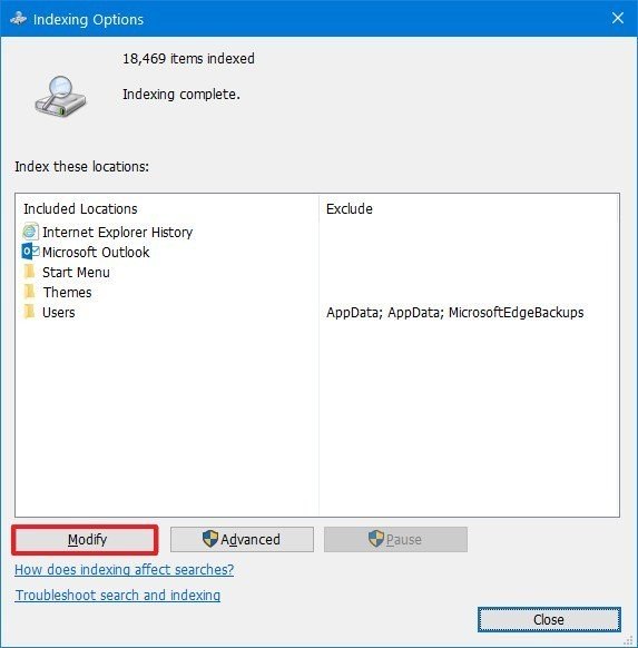 Once you complete the steps, Windows Search will continue to run on your device, but Windows 10 will no longer index the location you specified, which should help to improve the overall performance.