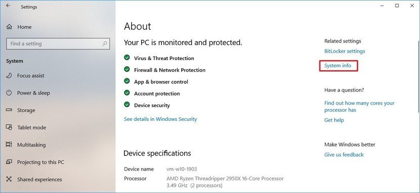 Under the „Related settings“ section, on the right pane, click the System info option.