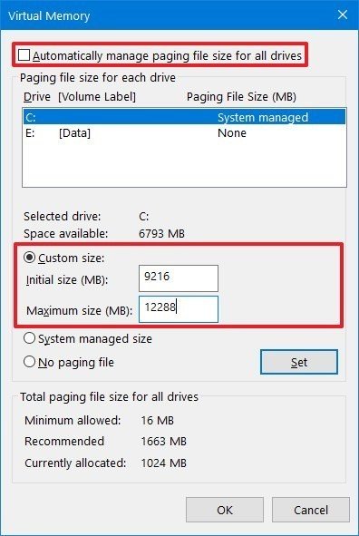 In the event that the new settings are causing issues, you can always revert the changes using the same instructions, but on step No. 10, make sure to select the System managed size option, and check the Automatically manage paging files size for all drives option.
