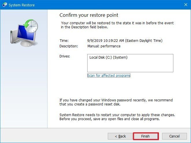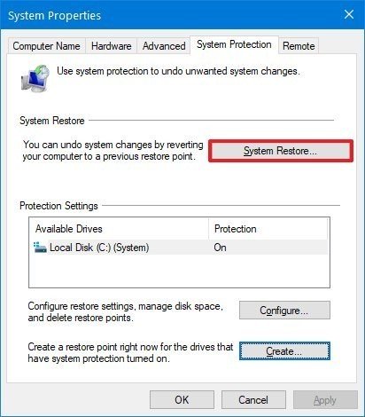 Sometimes recently installed updates, drivers, or apps may be the reason why your computer is running slow. If this is your case, you can quickly undo changes to improve performance by going back to a previous good working state using a System Restore point.