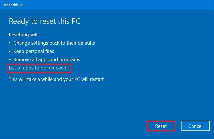 After you complete the steps, Windows 10 will be reinstalled removing previous configurations, settings, and apps to help you boost system performance.