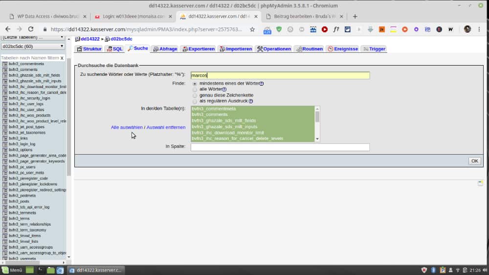 Dementsprechend kann man direkt löschen oder ändern. Suchen am besten über Suche >>> gesamte Datenbank