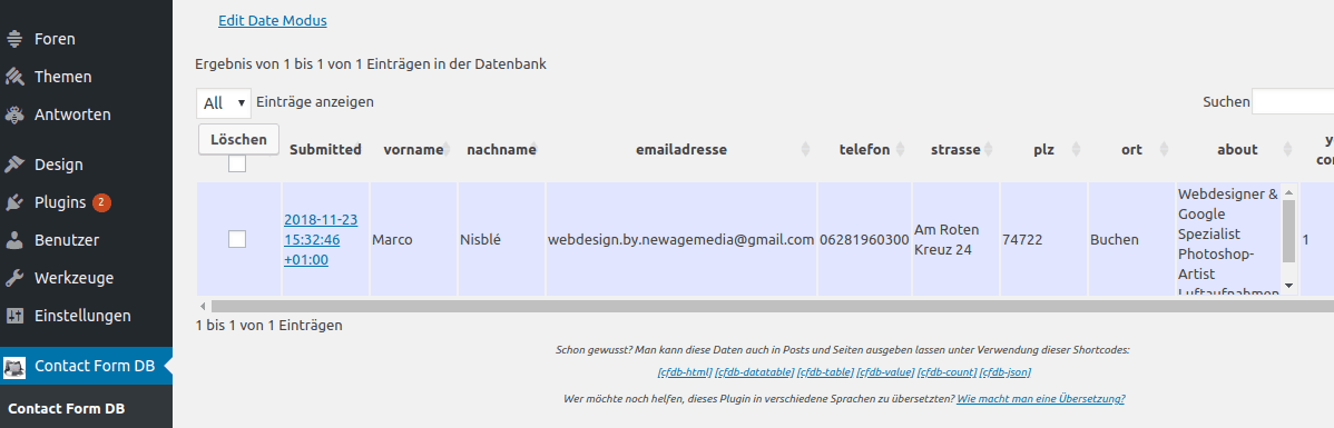 Exkurs: Daten vom Kontaktform in eine Datenbank schreiben und darstellen