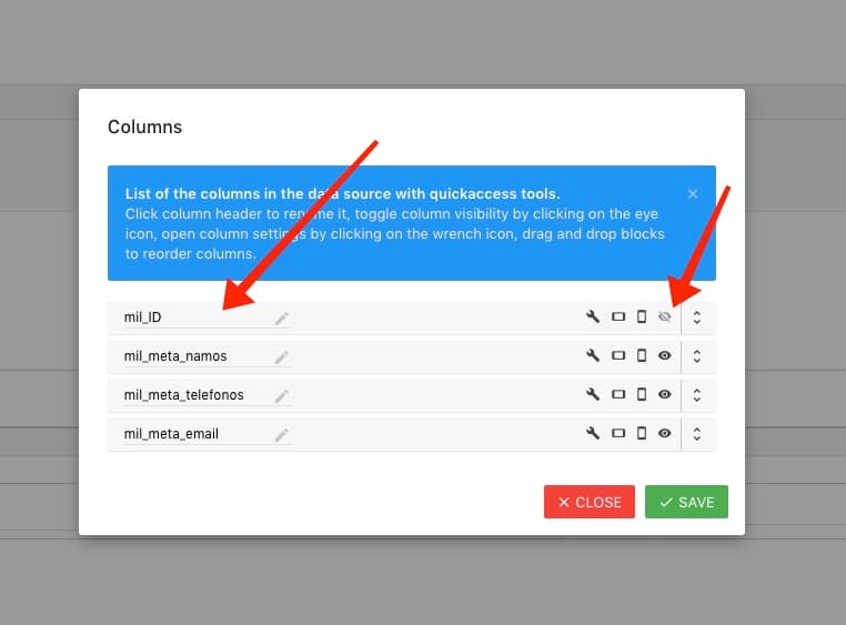 - Spalten können noch ausgeblendet, in der Reihenfolge geändert und umbenannt werden