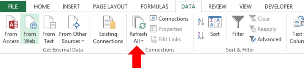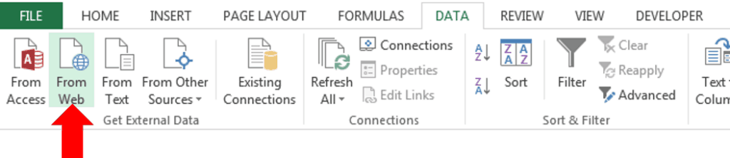 Dazu gehen wir in unser Excel und wählen unter dem Reiter „Data“ (bzw. „Daten“ im Deutschen) den Menüpunkt „From Web“ (bzw. „Aus dem Netz“) aus.