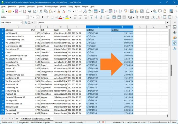 US-Datumsformat ins europäische Format umwandeln in LibreOffice Calc