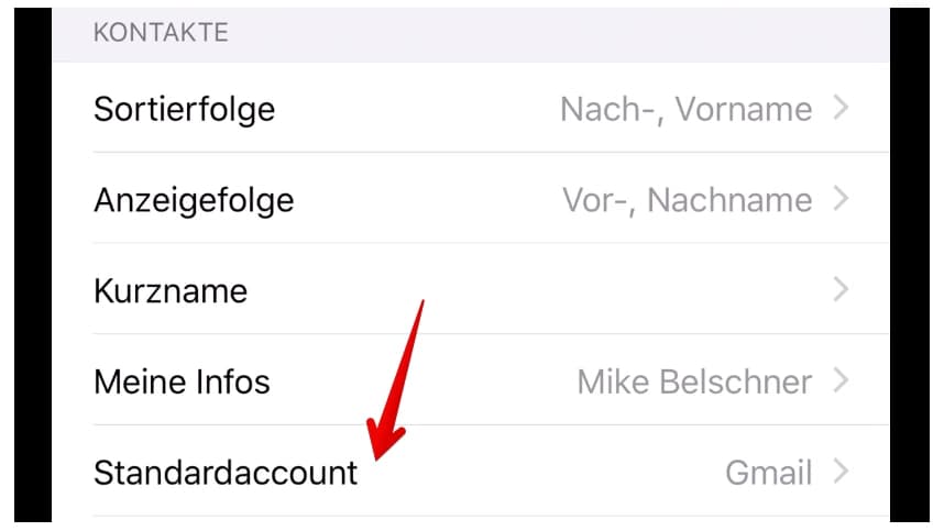 Scrollt nach unten bis zu dem Punkt „Kontakte“. Darunter findet ihr die Option „Standardaccount“.