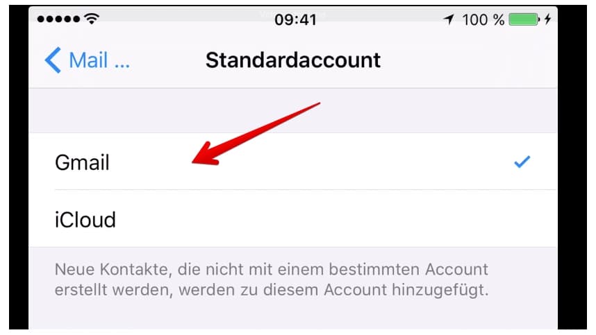 Wählt „Gmail“ aus, wenn neue Kontakte mit eurem Google-Konto synchronisiert werden sollen.