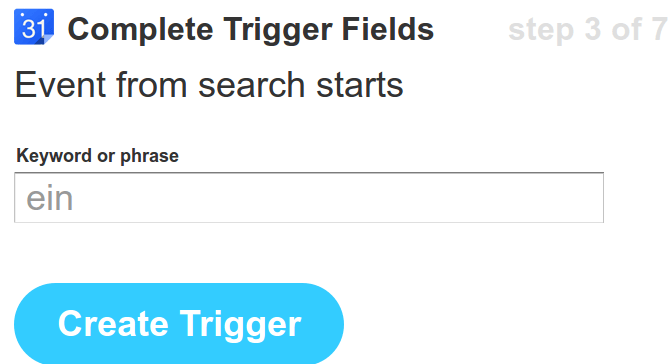 Wir nehmen „Event from scratch starts“, das kann Kalendertermine nach einem bestimmten Wort durchsuchen.