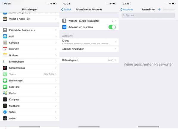 - Um die Passwörter einsehen zu können, muss man erst die iPhone-PIN eingeben (oder die Touch ID, respektive Face ID nutzen).