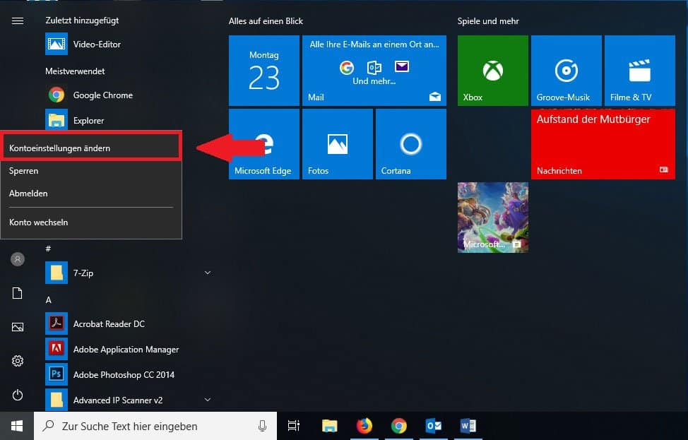 1. Öffnen Sie das Startmenü und klicken auf Ihr Profilbild