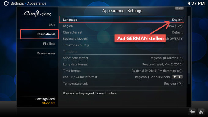 Kodi auf deutsch stellen