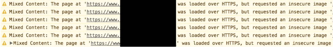 - Drücke auf deiner Website F12 (auf dem MAC CMD+F12) und es öffnet sich die Entwicklerkonsole. Unten in der “Console” erscheinen gelb hinterlegt Felder mit “Mixed Content”: