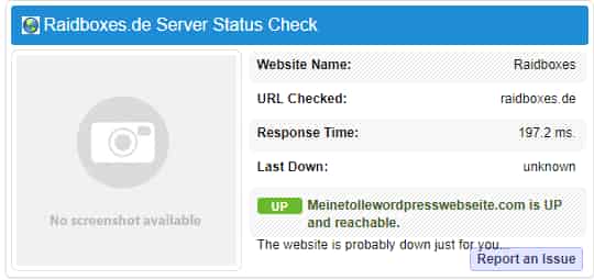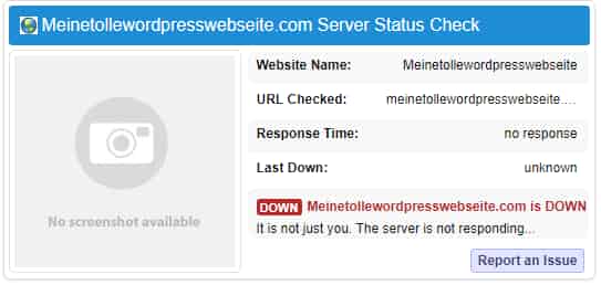 Wenn das Ergebnis des Tests aber lautet “DeineUrl.de” is DOWN, dann deutet dies auf ein Problem mit deinem DNS, deinem Webserver oder einem WordPress-Plugin oder Theme hin.