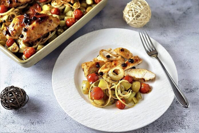 Mediterrane Hähnchenbrustfilets mit Rosmarinkartoffeln weitere 30 min. bei 200°C Ober-/Unterhitze fertig garen.