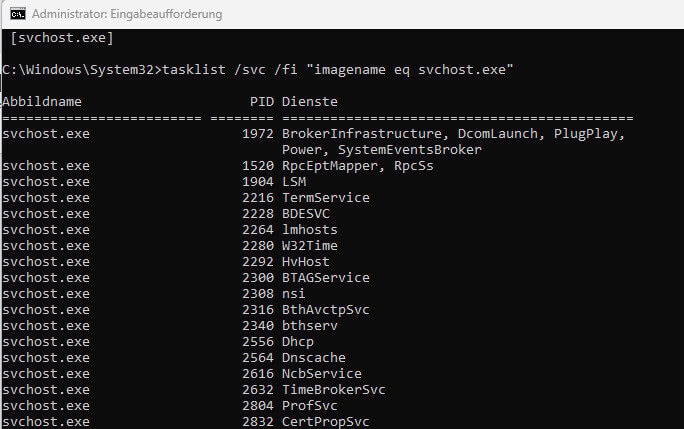 - Dies zeigt eine Liste aller svchost.exe-Prozesse und der zugehörigen Dienste an2.