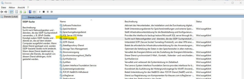 - Suchen Sie in der Liste nach dem Eintrag „SSDP-Suche“ und doppelklicken Sie darauf1.
