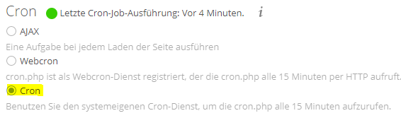 Stellt noch in den Einstellungen unter Allgemein den Cron um