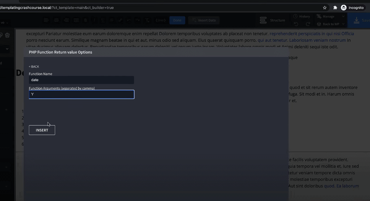 Insert Data >>> Advanced // PHP Function Return Value Options: