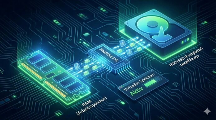 pagefile.sys) ist eine Art „Notizblock“ auf Ihrer Festplatte. Wenn Ihr echter Arbeitsspeicher (RAM) voll ist, lagert Windows Daten, die gerade nicht dringend gebraucht werden, auf diesen Notizblock aus. Das verhindert, dass Programme abstürzen.