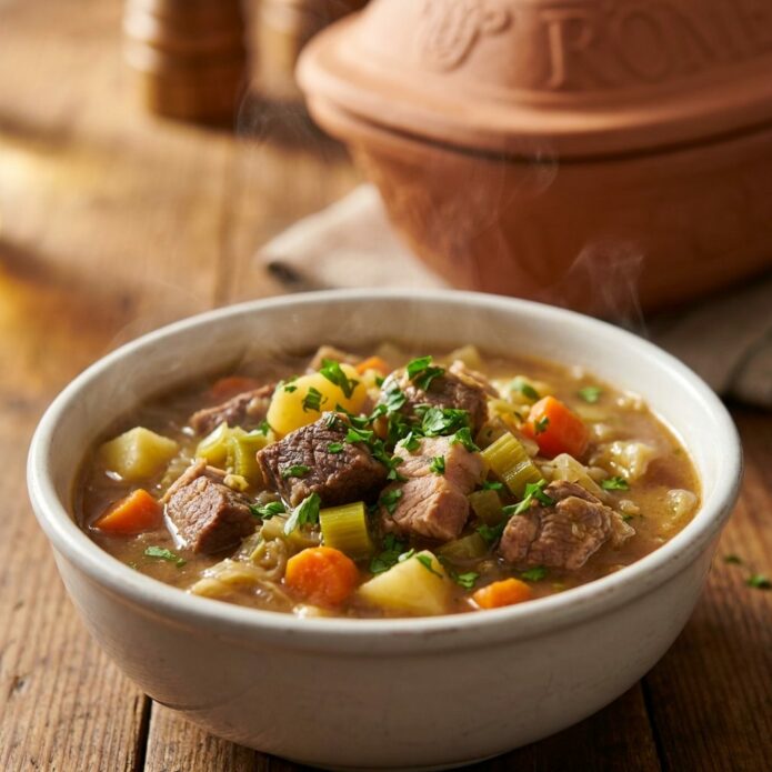 Zeit: Lass den Eintopf ca. 90 bis 120 Minuten schmoren.