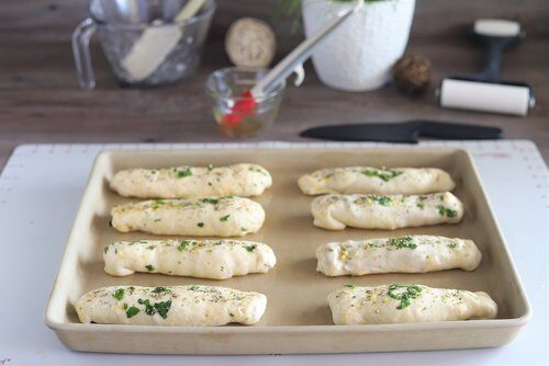 Alle Zutaten für den Teig miteinander verkneten und in der Nixe ca. 30-45 min. gehen lassen.