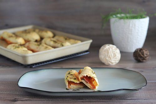 Pizza-Sticks im vorgeheizten Ofen bei 240°C Ober-/Unterhitze in der untersten Schiene ca. 20 min. backen.