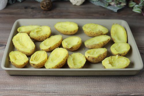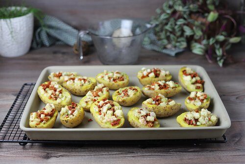 Kartoffelhälften damit belegen und weitere ca. 15-20 min. fertig backen.