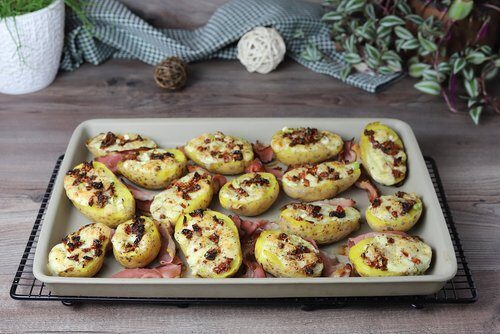 Kartoffelhälften damit belegen und weitere ca. 15-20 min. fertig backen.