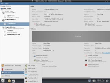 Mit Baobab steht daneben ein Werkzeug zur grafischen Darstellung der Datenträgerbelegung zur Verfügung, Photoreq und Testdisk sind für die Wiederherstellung versehentlich gelöschter Dateien zuständig. Drivereset löscht bei Bedarf Datenträger komplett und setzt sie auf ihren Auslieferungszustand zurück. Mit GParted legt man außerdem Partitionen an, löscht, formatiert sie und verändert ihre Größe.