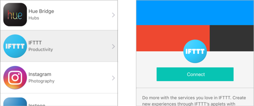 Go to the Things tab of the Stringify app and tap ‘New’ to locate IFTTT. Tap ‘Connect’ to begin the authentication process.