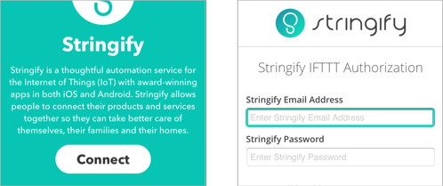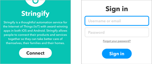 Next, you will see the Stringify connection page. Tapping ‘Connect’ will open the IFTTT Sign In page. Login to your IFTTT account.