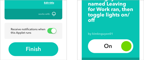 Once you have finished building your Applet, tap “Finish”. Make sure your Applet is turned on.