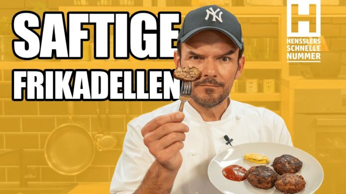Formen: Feuchte deine Hände mit Wasser an (so wird die Oberfläche schön glatt). Forme aus der Masse etwas dickere Frikadellen – sie sollten nicht so flach wie Burger-Patties sein, sondern kompakt und cremig ohne Risse [04:16].