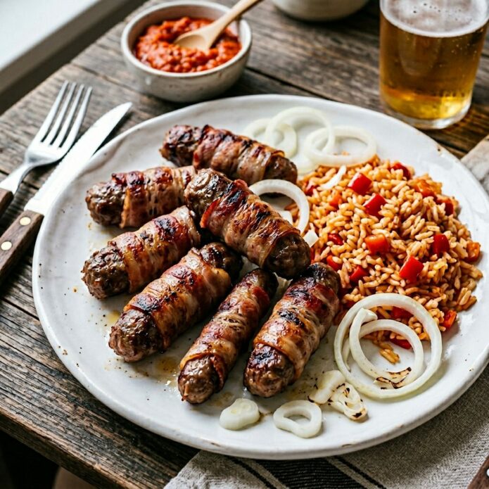 Cevapcici im Speckmantel und Djuvec-Reis
