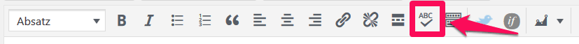 Nach der Aktivierung für den jeweiligen Benutzer, findet man als Blogger im Menü des Editors in der ersten Zeile der Menü-Icons den “Schalter” um die Rechtschreibprüfung bei Bedarf zu aktivieren.