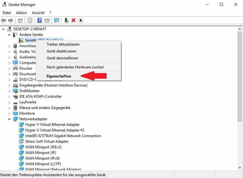 3. Auf den Treiber machen Sie einen rechtsklick und wählen “Eigenschaften“ aus