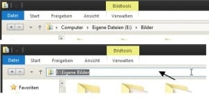 Um auch die richtigen Pfade einzutragen, muss man einfach den Explorer öffnen und im Ordner in das Adressfeld klicken.
