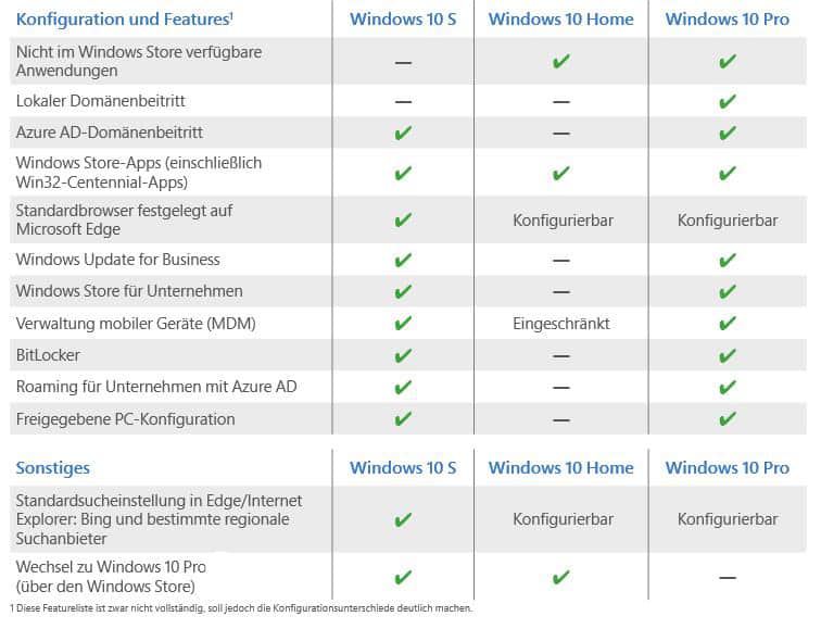 Abschließend für euch noch eine kleine Übersicht der wichtigsten Unterschiede der verschiedenen Windows 10-Versionen:
