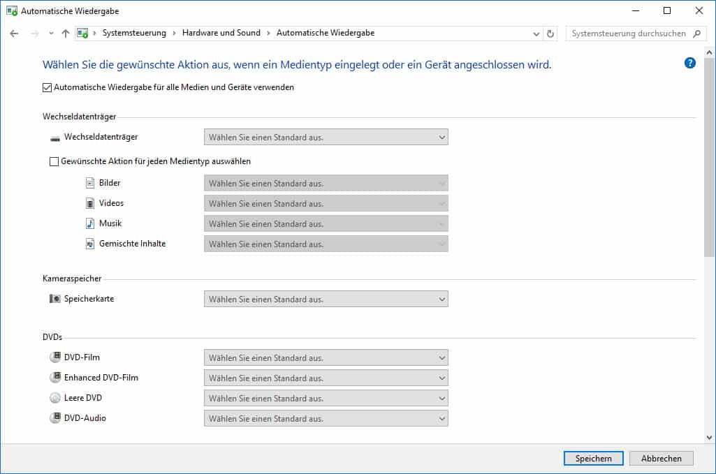 Windows 10: Automatische Wiedergabe deaktivieren / aktivieren