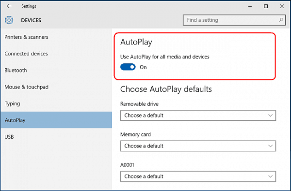 Gehen Sie zu <Einstellungen> und klicken Sie auf das Symbol <Geräte>. Scrollen Sie nach unten und wählen Sie die Option <AutoPlay>, und deaktivieren Sie sie für alle Geräte. Danach werden Sie mit dem AutoPlay-Popup-Fenster nie belästigt. Wenn Sie es jedoch nicht für alle Geräte ausschalten möchten, können Sie es unter <Choose AutoPlay Defaults> anpassen.