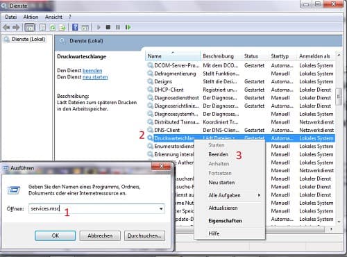 Schließlich starten Sie wieder den Dienst „Druckerwarteschlange“.