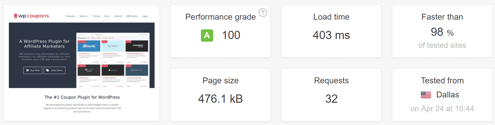 I also moved our wpcoupons.io WordPress site to system fonts and had great results, check out this speed test below.